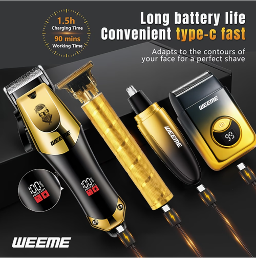 Rechargeable hair clipper, shaving razor, electric hair trimmer, electric scissors, push trimmer with digital display, nose hair remover, shaving kit set of four pieces