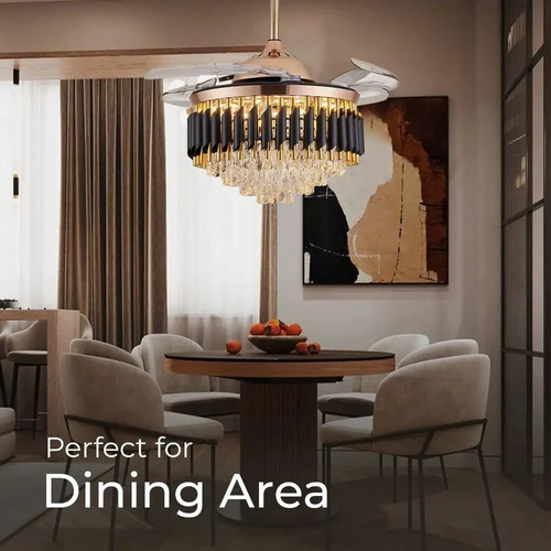This luxury fan light is a perfect choice for your home.Why use ordinary light when you can use something more beautiful? This elegant fan light adds luxury to your home and helps keep your room cool. Very suitable for bedroom, living room, shop, or guest room. Message us on WhatsApp to order now.