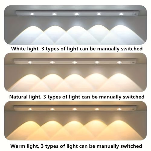 USB rechargeable motion sensor LED light strip - dimmable, 3 colors, wireless lighting, suitable for kitchen, wardrobe, cabinet, bedroom, etc. - Ideal for modern home with marble countertops and white light effects, bedroom lighting | Fashion fixtures | Wireless LED, Indoor motion sensing light